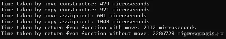 cout << "Time taken by move constructor: " << durationMoveConstructor.count() << " microseconds" << endl;