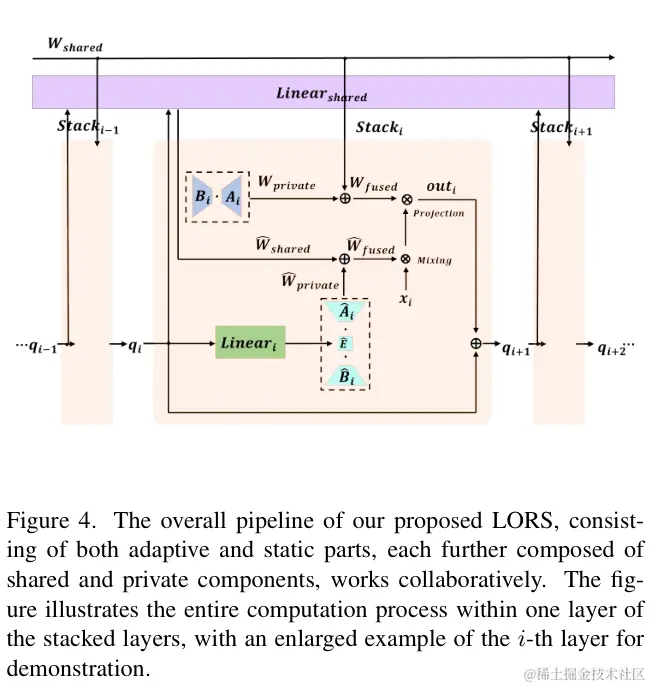 Wshared 为所有堆叠层的共享参数,Wiprivate 为第 i 层的私有参数,其计算如下: