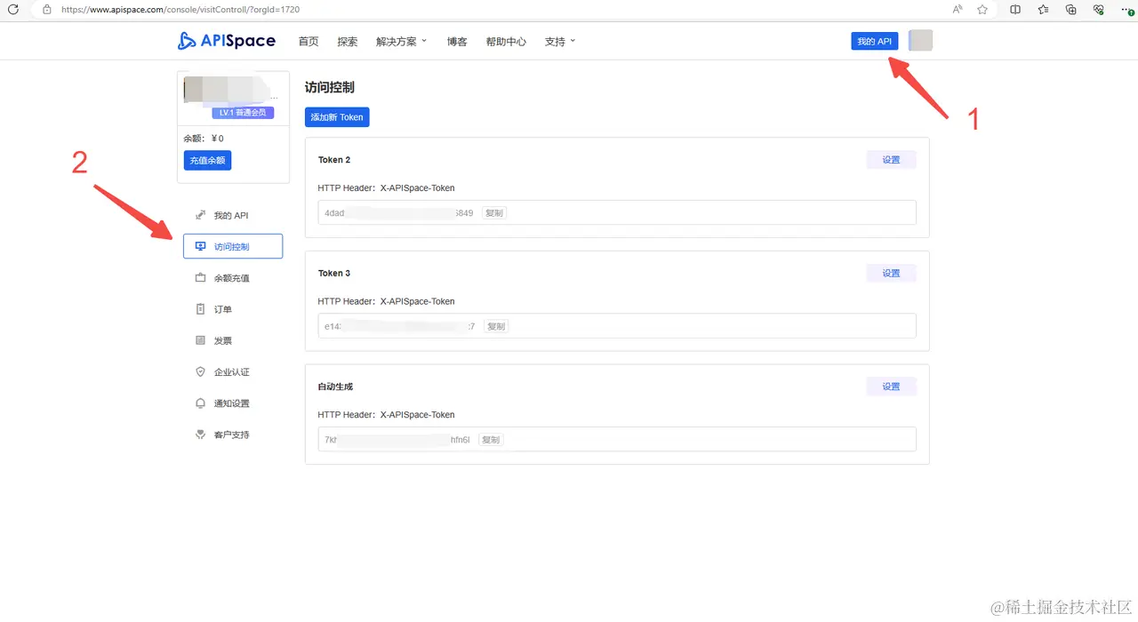 注册成功后,就获取到了API密钥,用于确保请求的合法性。