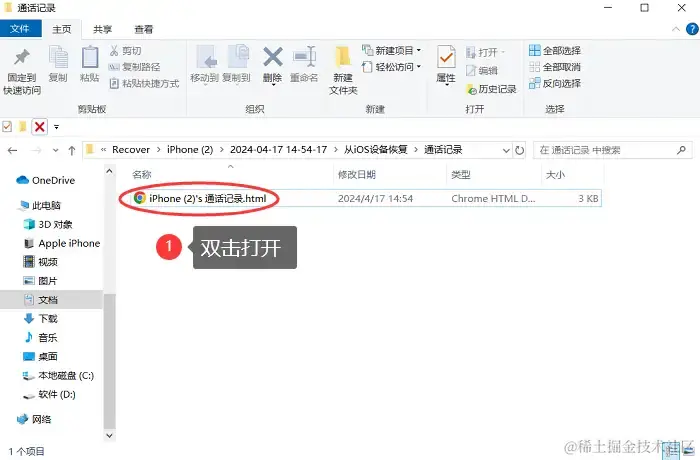 步骤3:导出手机通话聊天记录后,双击打开它,我们可以在浏览器上查看完整的信息(包括手机号码、日期、类型、持续时间等)。