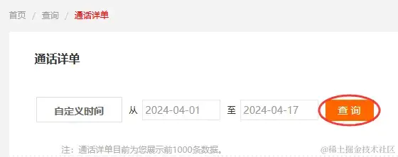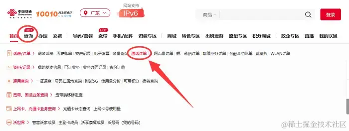 步骤3:在**【查询】下方弹窗中,点击【通话详单】**。