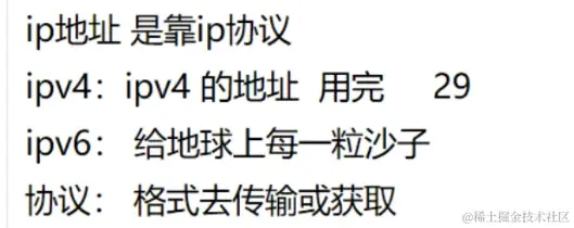 ipv4 :(目前主流的协议)虽然用完了 ipv6 :(新型)可以把每一粒沙子标记