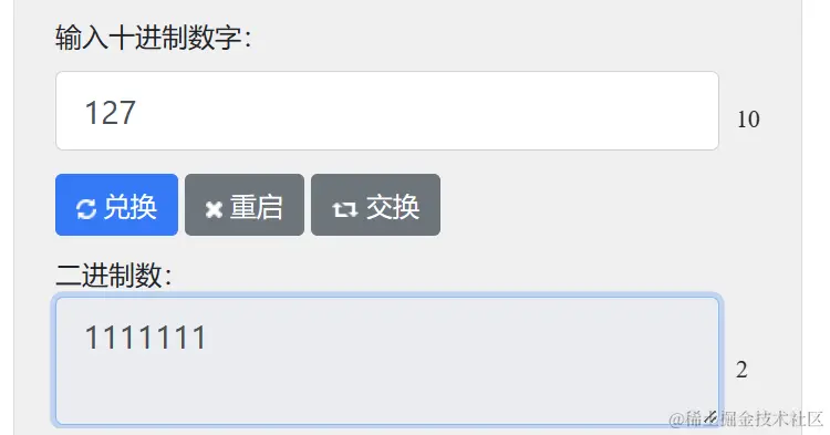 | 二进制 | 十进制 |
