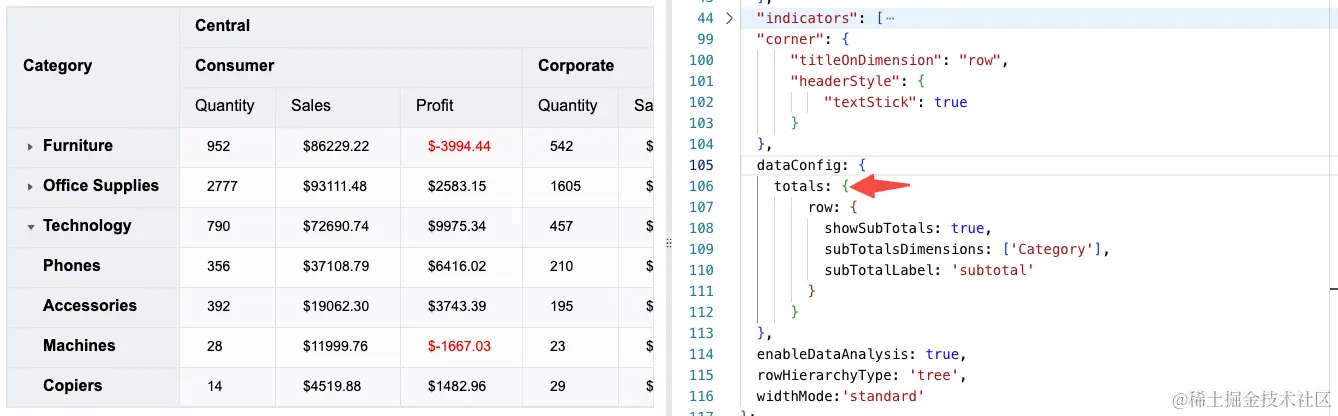 subTotalsDimensions: ['Category'],
