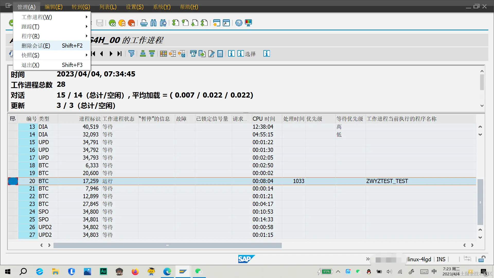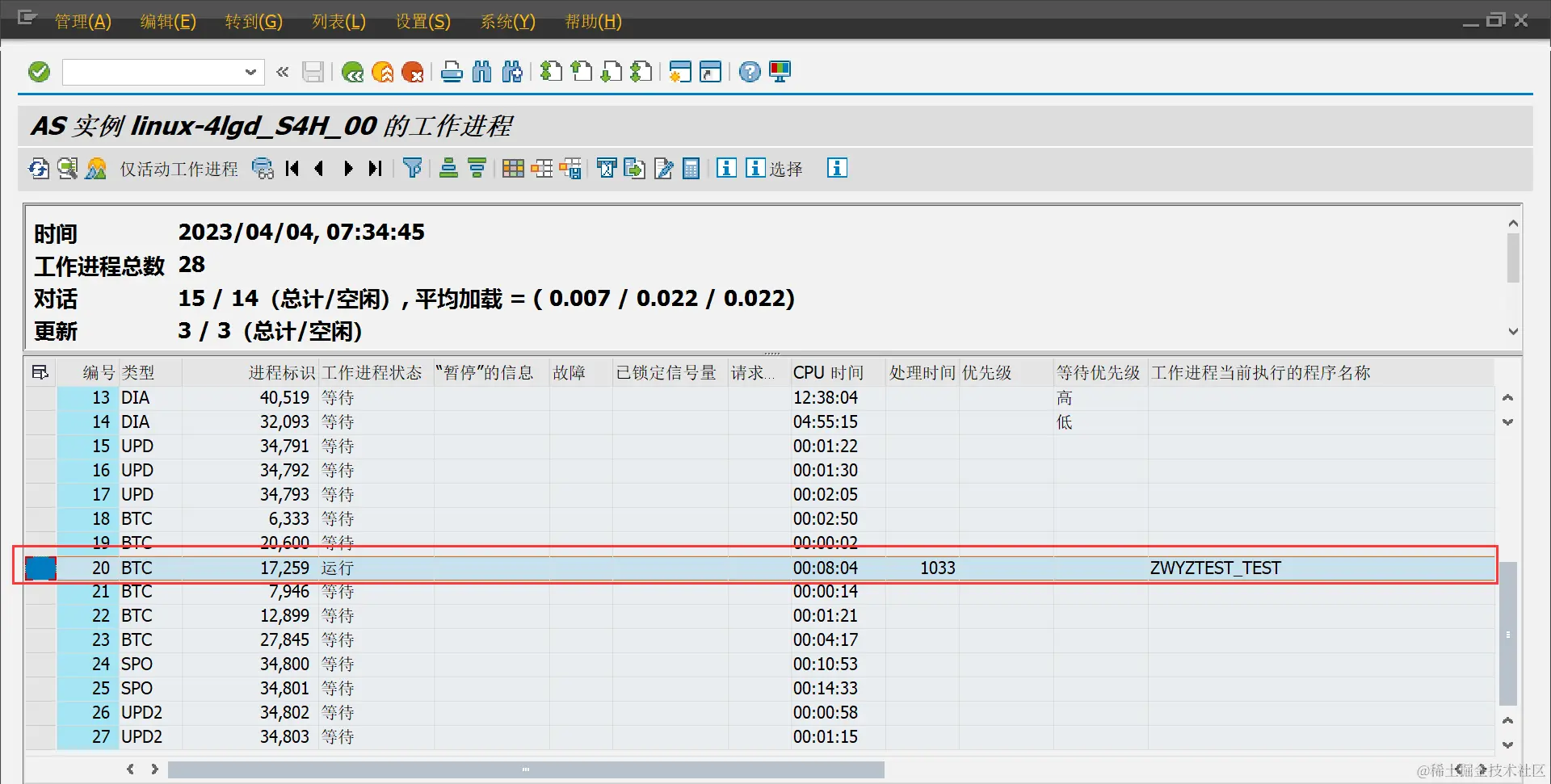 (十)若想取消报表程序后台作业,打开【T-CODE:SM50】,找到我们报表运行的该条目