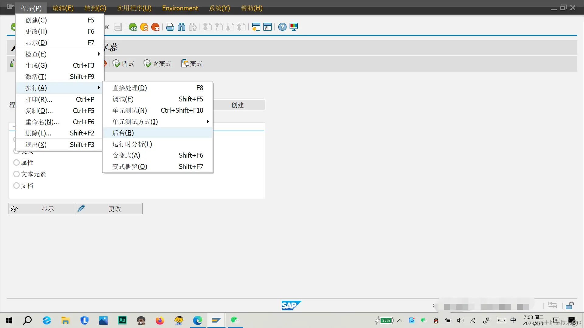 (二)在ABAP编辑器:初始屏幕中,点击菜单栏中的程序—>执行—>后台