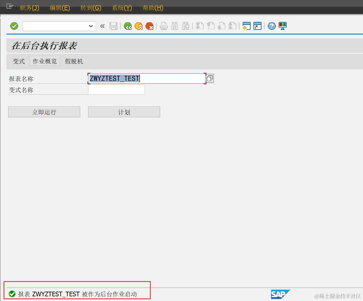 (十四)返回【T-CODE:SAT】中检查,确认该报表程序已被取消后台运行