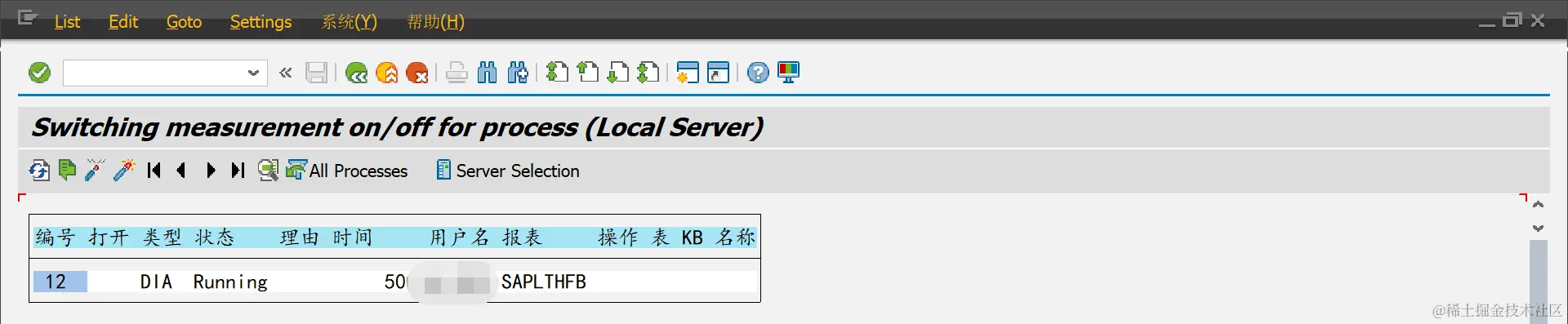 User:用户Cilent:集团AS实例:应用服务器实例External Session:在哪个External Session 中执行的程序被记录数据。1表示只在1号进程执行的程序被记录数据,而其他的进程的不记录,0表示所有的都记录Process Type:程序的类型,Dialog,Update,RFC等。