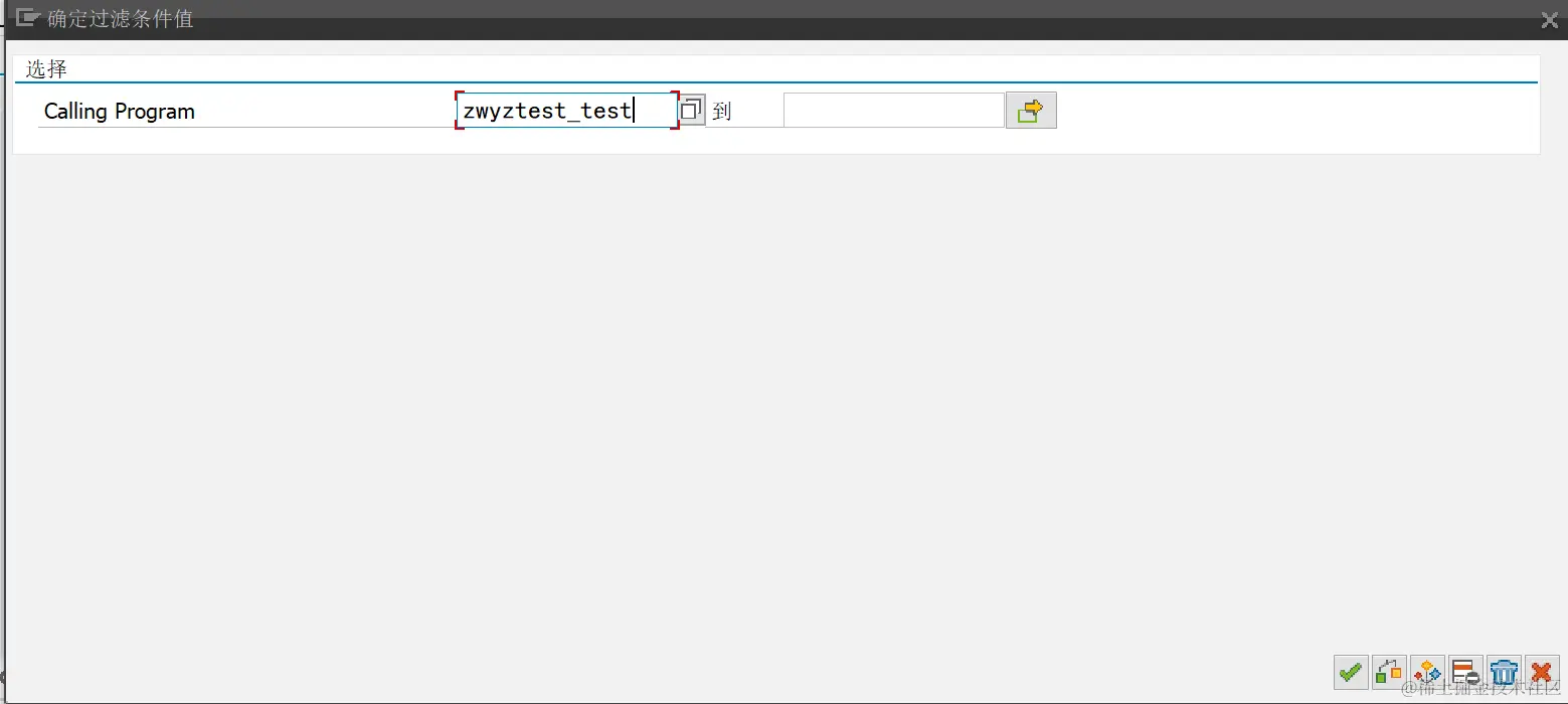 (五)在确定过滤值窗口中输入我们创建的测试程序名,单击右下角执行按钮(绿色的√)