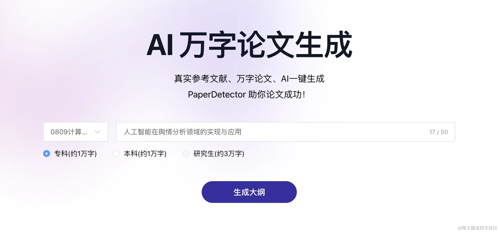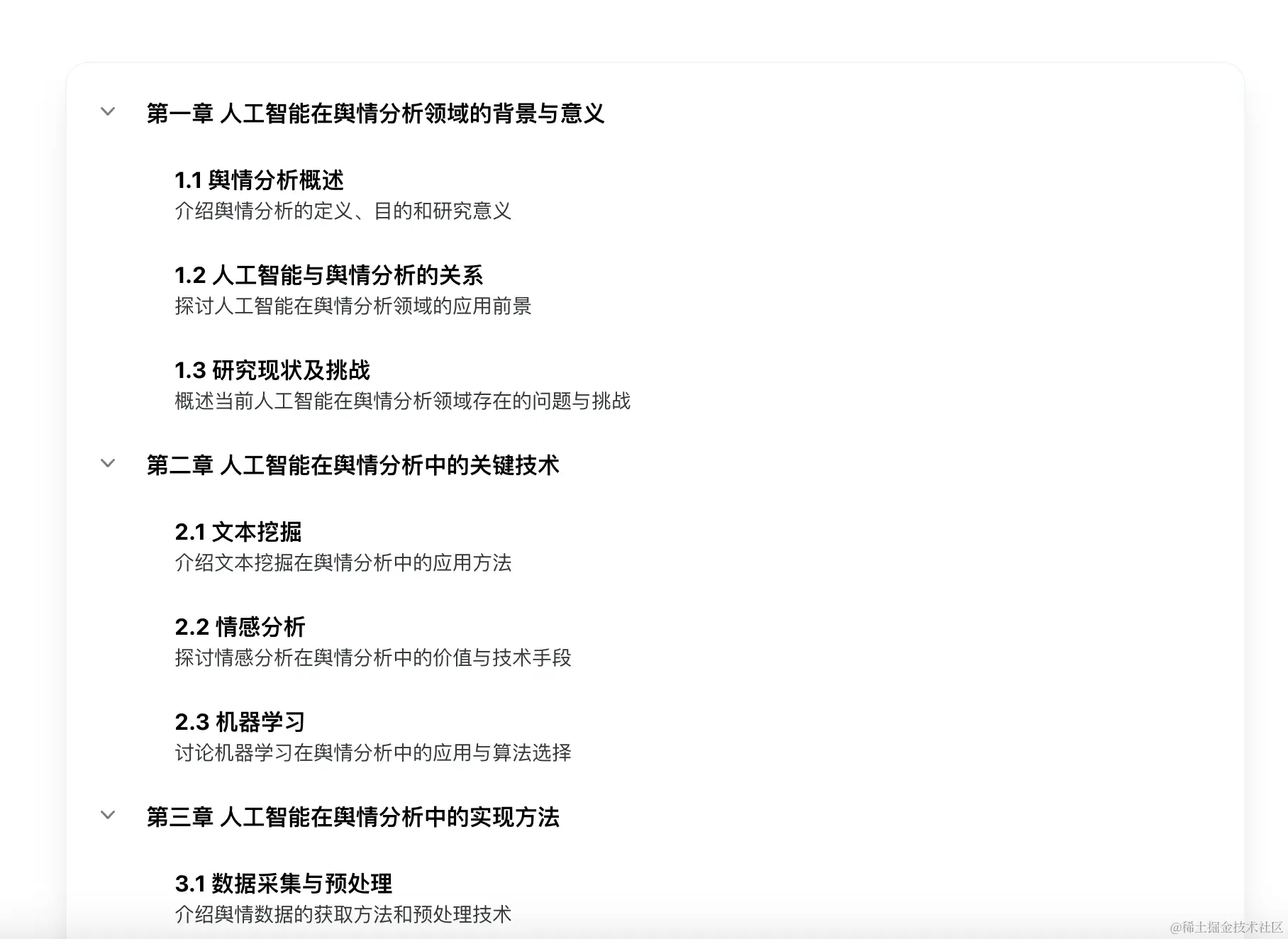 - 之后用户可以在此基础上填充细节,系统还会推荐真实的参考文献,最终生成格式规范的论文初稿。