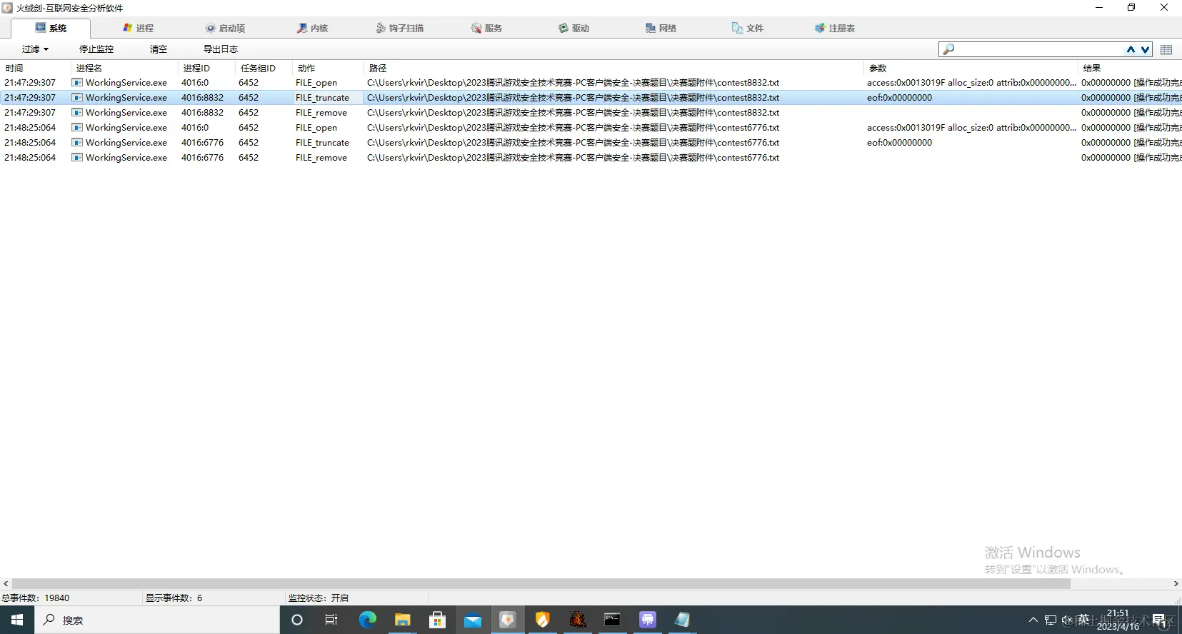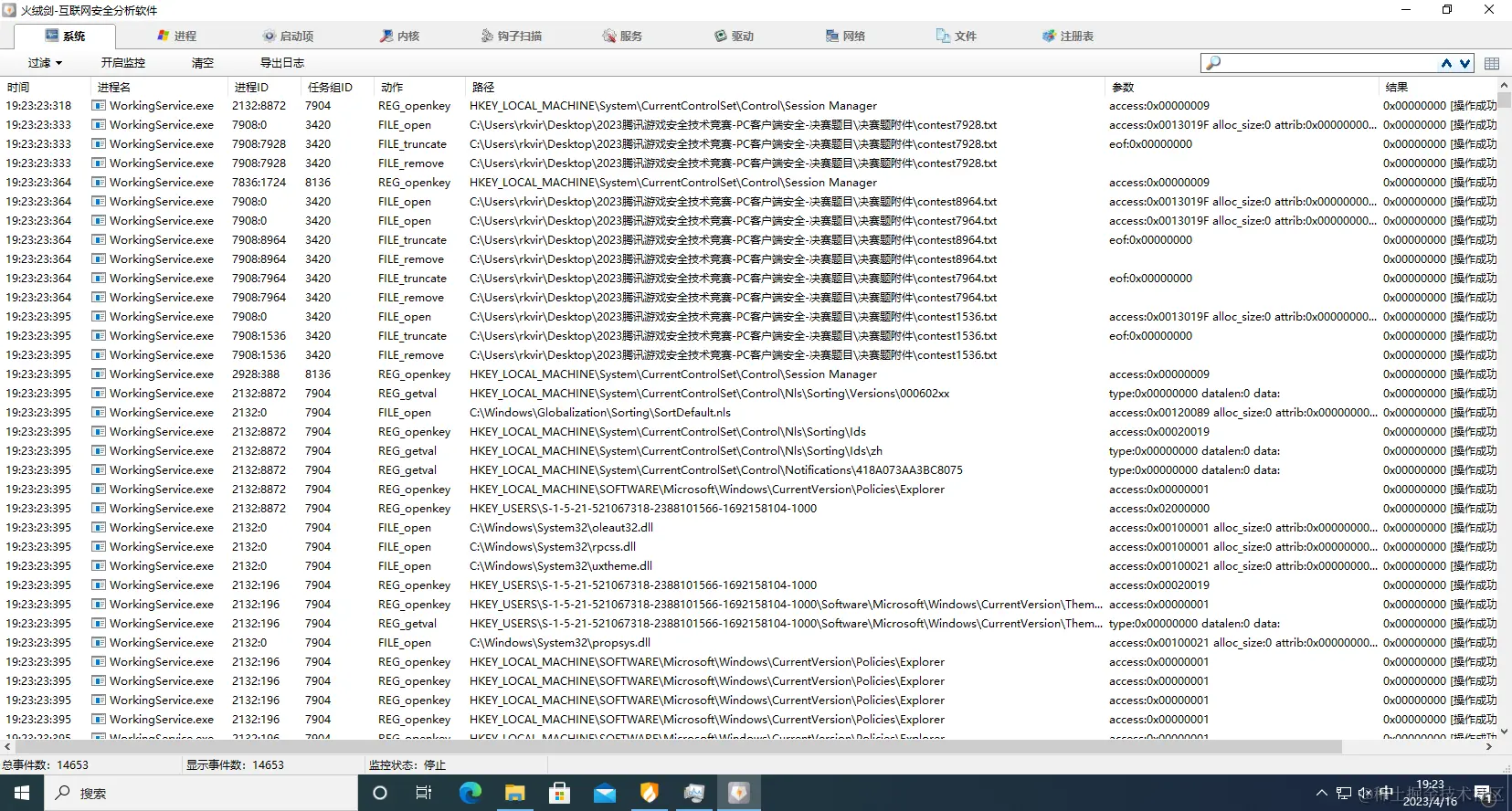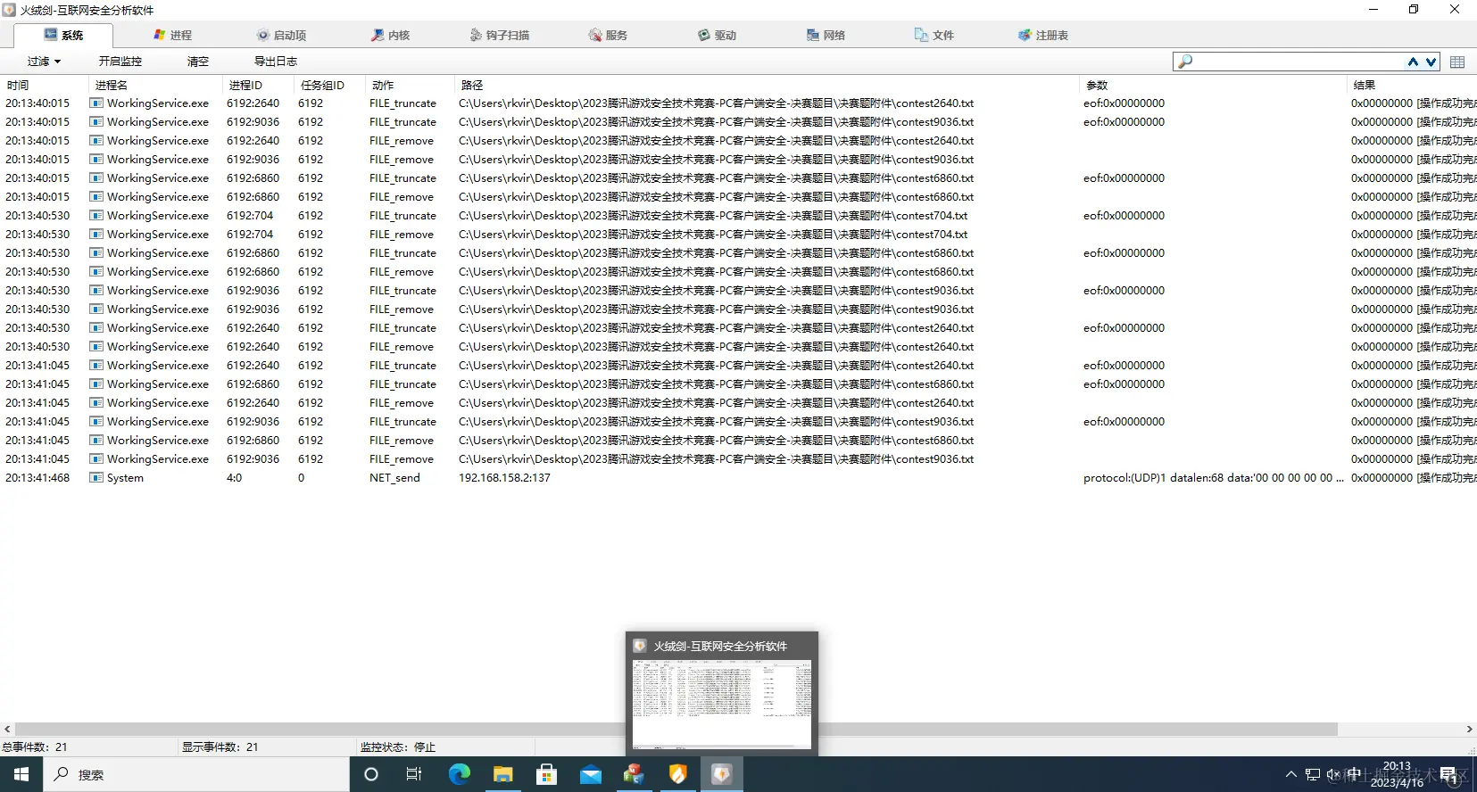 通过火绒剑的事件分析可以发现,文件创建的频率明显下降很多(因为每次强制休息了500MS):