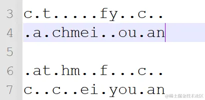 Base64编码的一组中,三个原文对应四个密文。第一个密文和第四个密文只会被原文第一个字符和第三个字符影响。第二个字符会被第一个原文和第二个原文字符影响,第三个字符会被第二个原文和第三个原文字符影响。