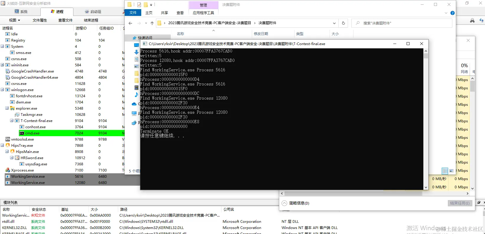 1.在64位Windows10系统上运行contest.exe, 找到明文的信息,作为答案提交(1分)。