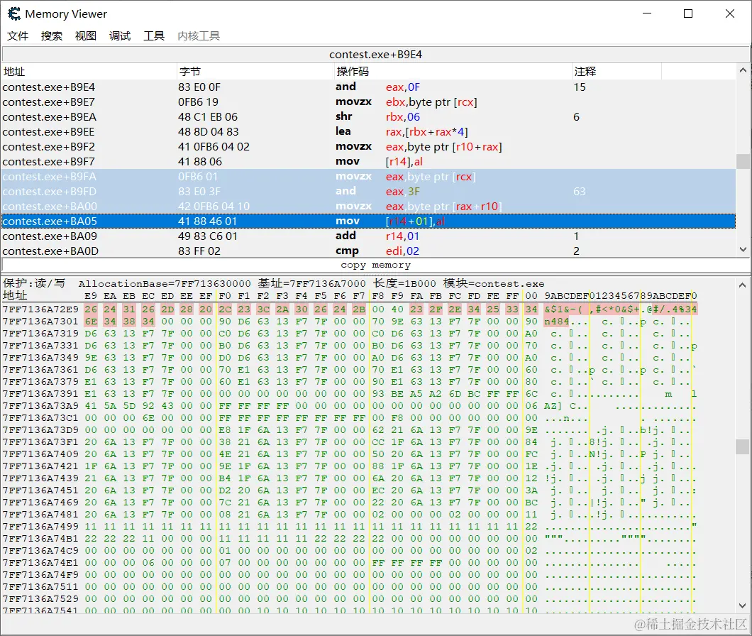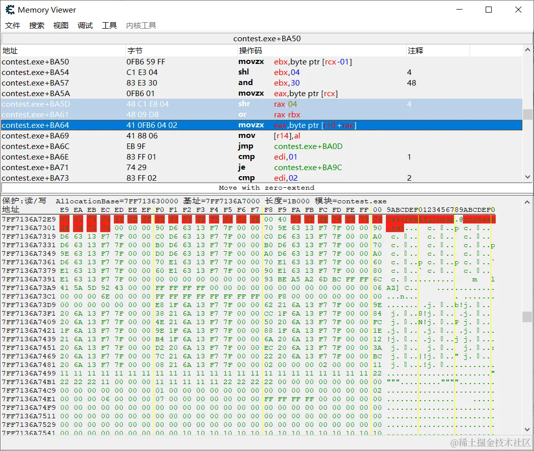 同样memory view查找 7FF713657190 地址,结果找到一串 base 表: