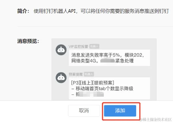 DingTalkUtils.sendMsg(alarm.getAlarmMessage());