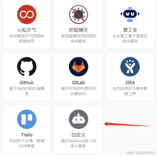 以 PC 端为例,打开 PC 端钉钉,进入首页面点击头像,在弹出框里选择机器人管理,打开管理页面后可以选择自定义,如下图所示: