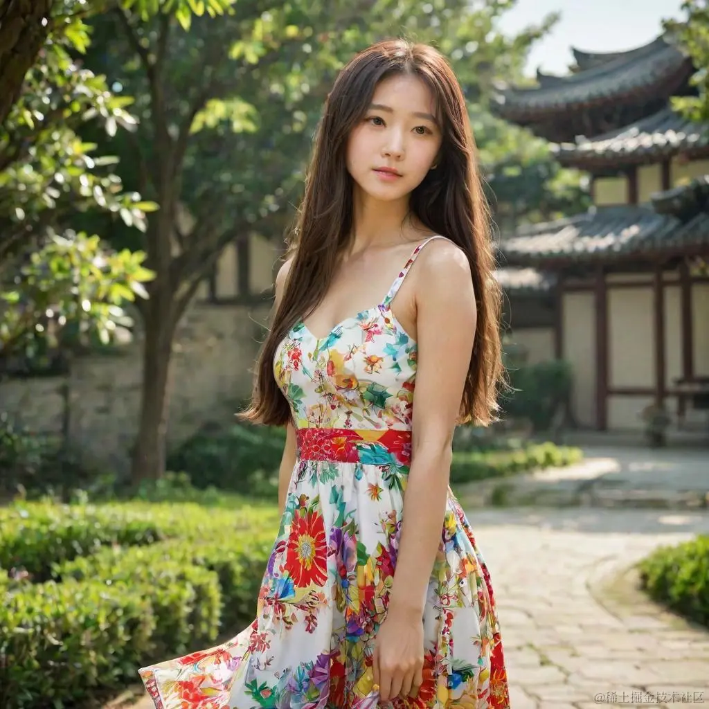 注意提示词为一个穿背心裙的长发亚洲女孩(卡通风格),其它参数在上一篇文章中有介绍。