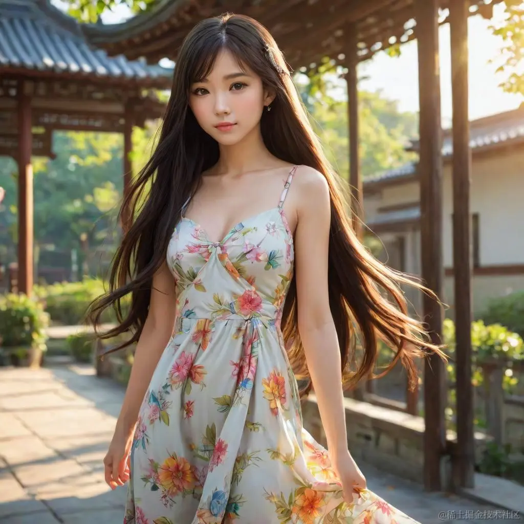 prompt = "masterpiece, 1girl, long hair, asian, sundress, cartoon, add detail"