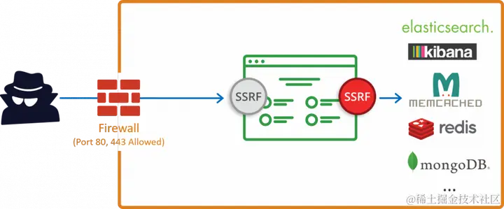 如果利用 SSRF 漏洞攻击者可以很简单的绕过常见的防御措施和设备,直接对内网进行攻击。
