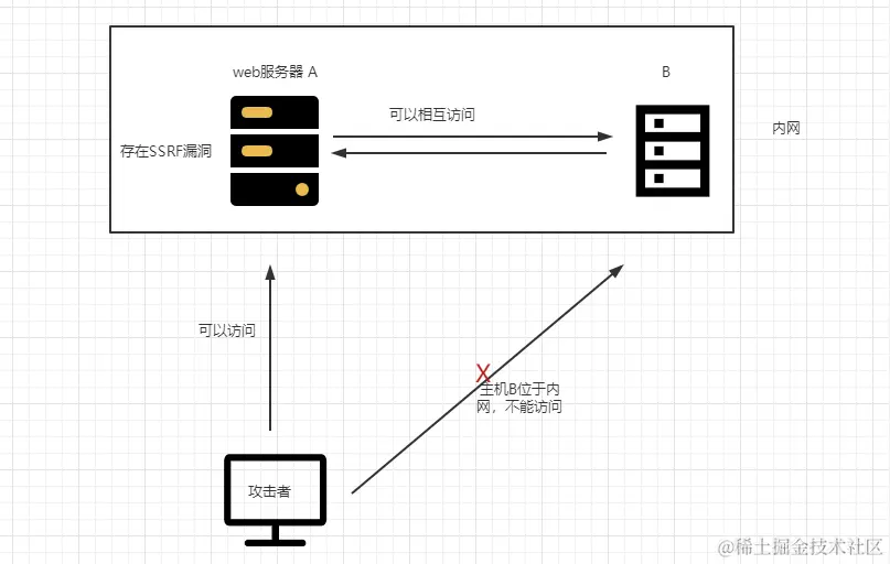 一般情况下,SSRF攻击的目标是外网无法访问的内部系统。简单来说就是利用服务器漏洞以服务器的身份发送一条构造好的请求给服务器所在内网进行攻击。