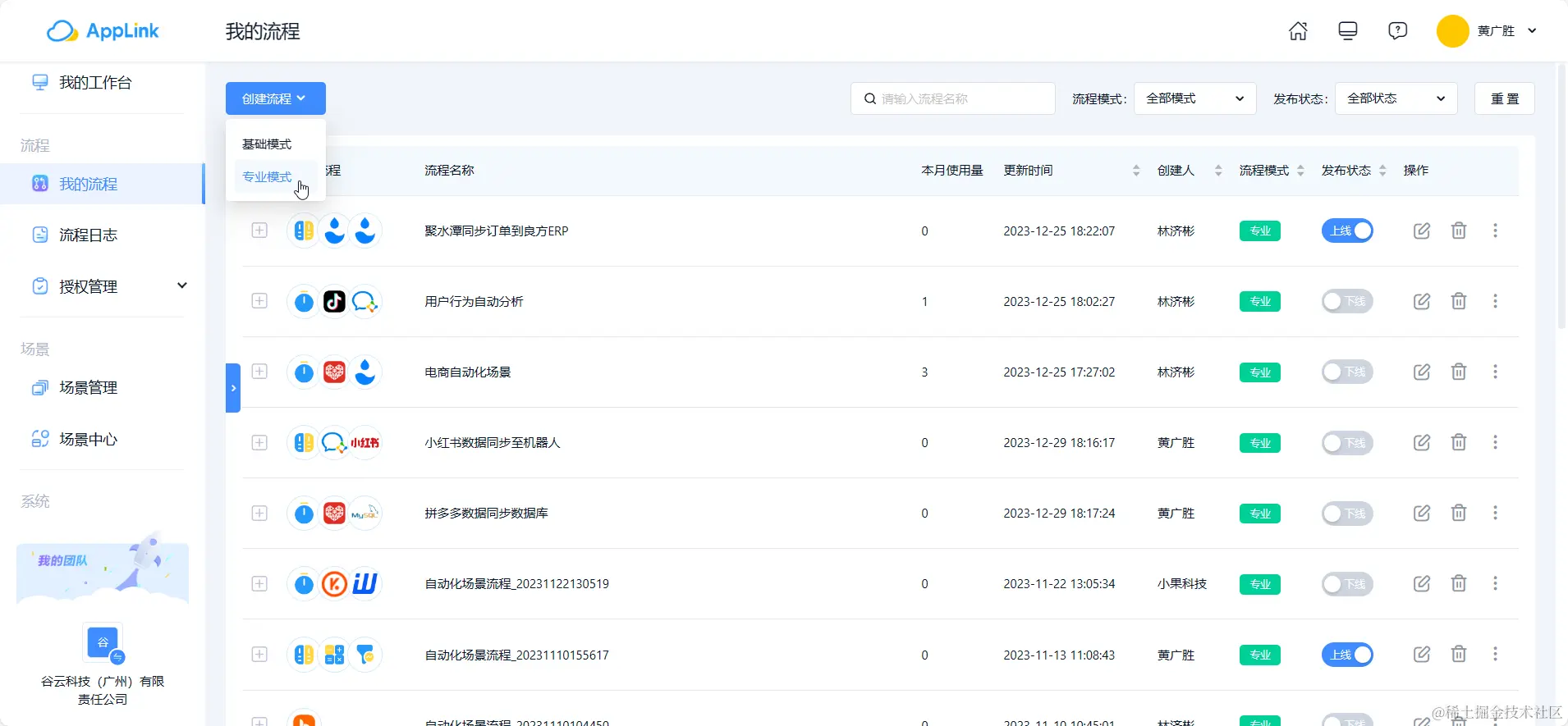 2.在"我的流程"选择要创建的模式,以专业模式为例