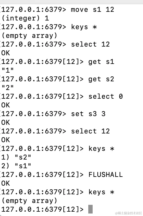 move s1 12 // 将键s1从当前数据库移动到索引为12的数据库