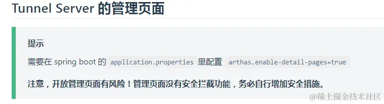 就可以直接启动。arthas.enable-detail-pages这个属性是用来开启arthas tunnel server管理页面。不过开启这个有风险,官方有做了说明