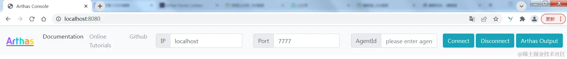 默认情况下,arthas tunnel server 的 web 端口是8080,arthas agent 连接的端口是7777。