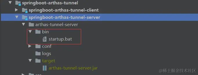 因为target的arthas-tunnel-server.jar比较大,我就没上传到github了,需要演示本案例的朋友,可以把下载好的arthas-tunnel-server.jar放到target目录,然后点击脚本运行即可