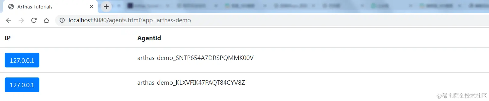 点击应用名底下的蓝色按钮,就可以看到连接的所有 agent 列表