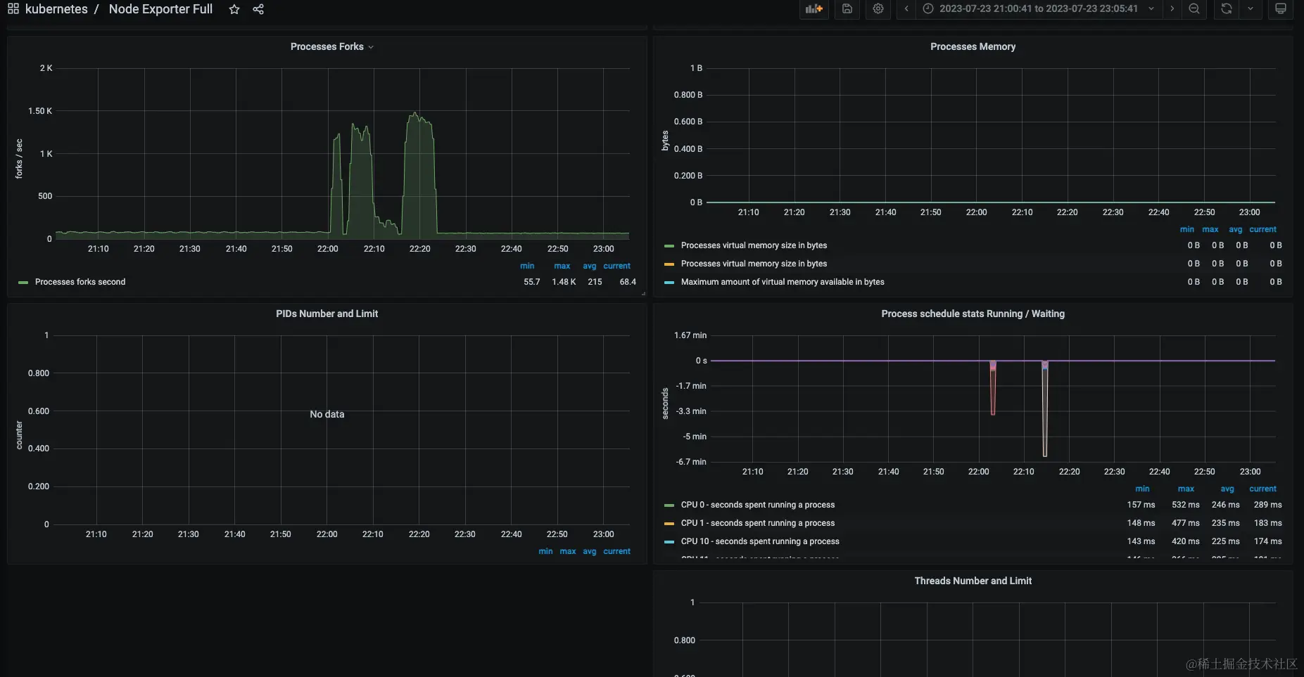 从22点开始出现了大量的 Processes Forks, 没收集到 PIDs Number 和 Threads Number