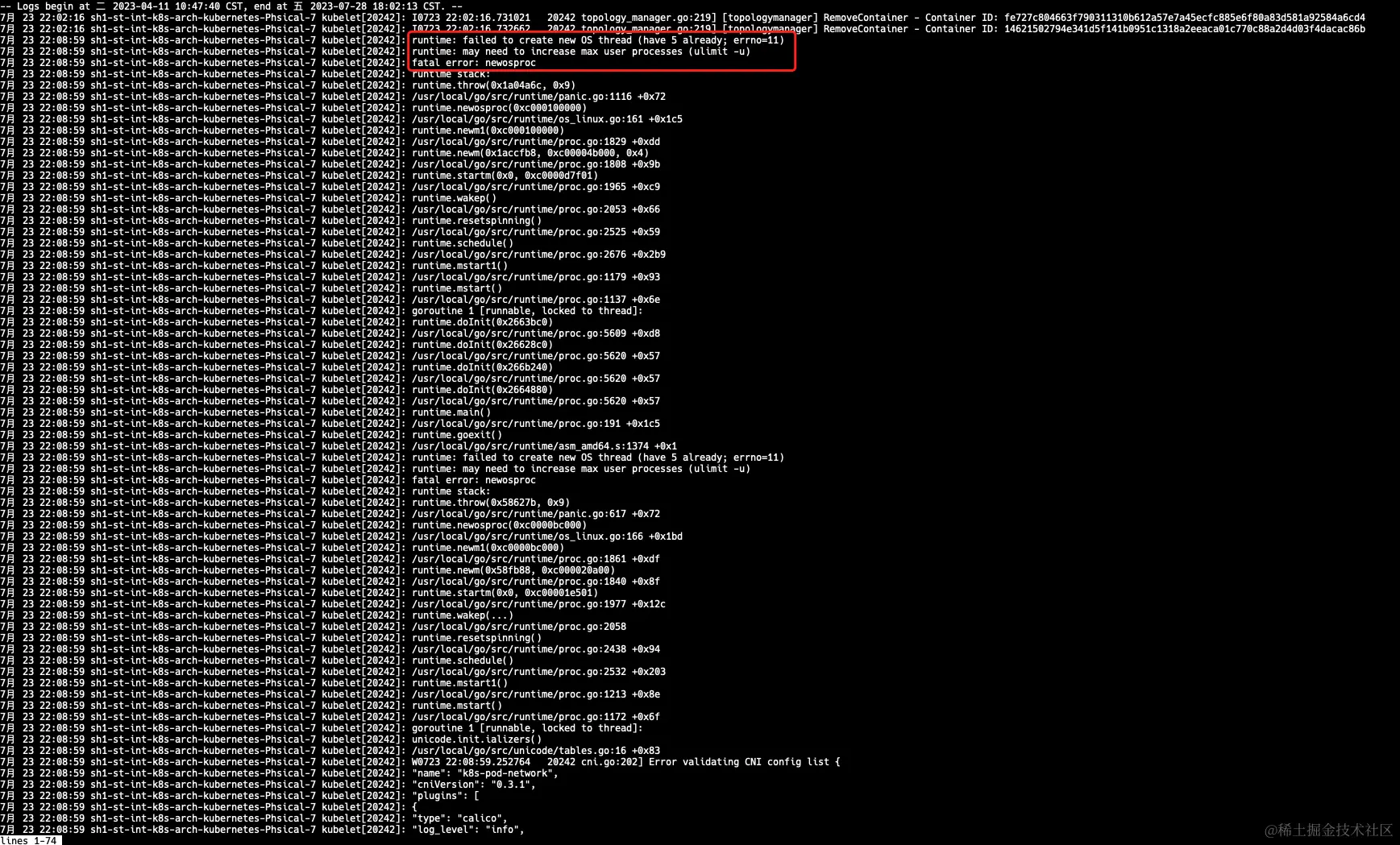 2)查看 kubelet 系统日志 journalctl -u kubelet.service --since "2023-07-23 22:00:00"
