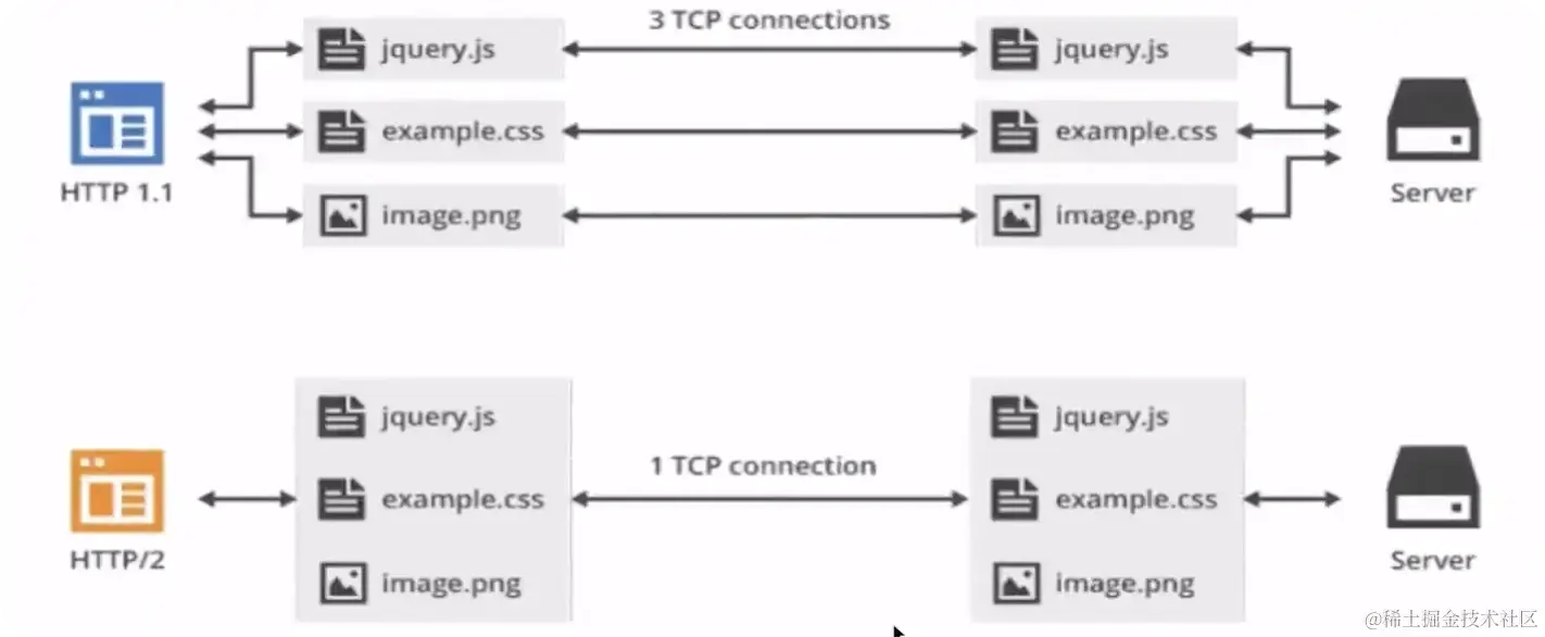 HTTP 是建立在 TCP 协议之上,所以 HTTP 协议的瓶颈及其优化技巧都是基于 TCP 协议本身的特性,例如 tcp 建立的 3 次握手和断开连接的 4 次挥手以及每次建立连接带来的延迟时间,所以减少这些重新握手和挥手至关重要