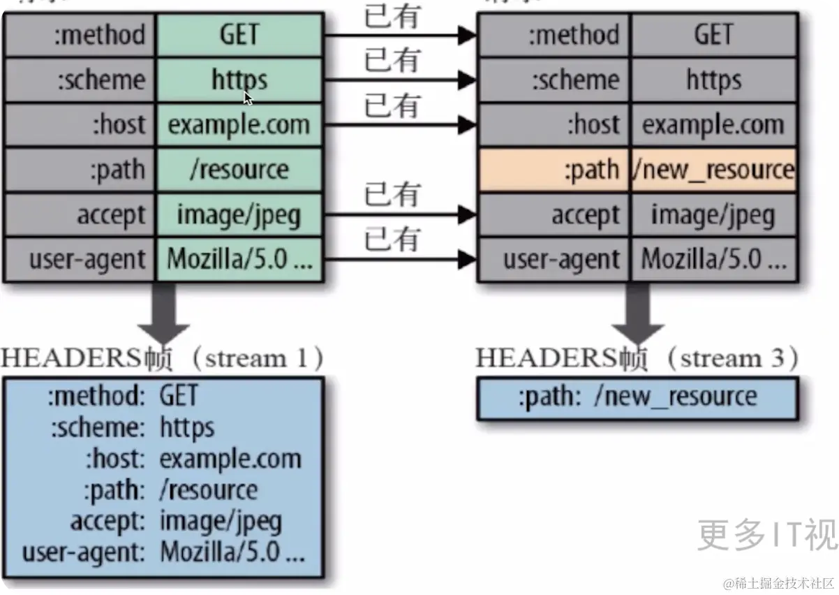 HTTP/2 在客户端和服务器端使用 首部表 来跟踪和存储之前发送的 键 - 值对,对相同的数据,不在通过请求和响应