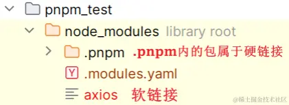 .pnpm/axios@1.6.8中记录了axios硬链接,以及axios所依赖的包的软链接。如下图所示。