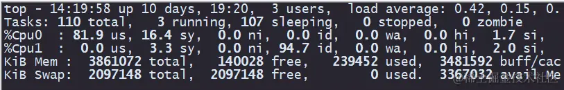 我们在使用 top 命令来查看 Linux 系统整体 CPU 使用情况的时候,往往看的是下面这一列: