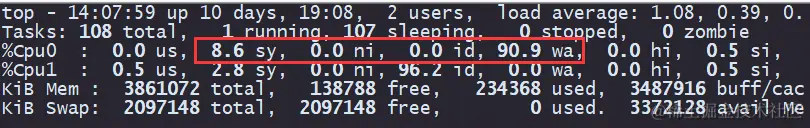 3)系统 iowait 高:
