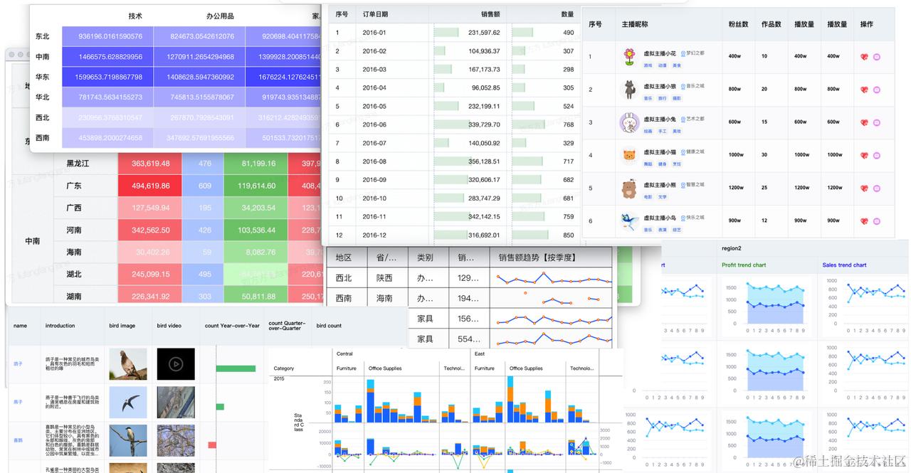 VTable 是字节跳动推出的VisActor开源可视化解决方案中的重要组成部分——高性能表格组件。以超高的性能和丰富的可视化能力著称。详情参见: