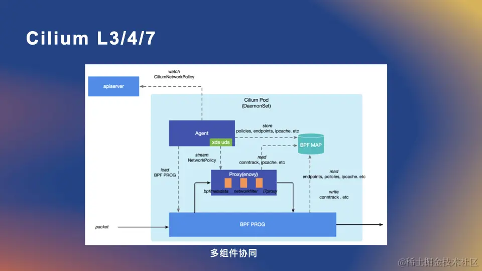 Cilium 尝试通过引入 per-node sidecar 代理,并通过多个组件(Agent、Proxy、BPF Map、BPF 程序)的协作在来解决该问题。该方案涉及多技术栈、多个组件和多层协作,这不仅增加了系统的复杂性,也要求运维团队必须具备跨层次的知识,以有效地管理和故障排查;同时也对功能的扩展带来了成本。