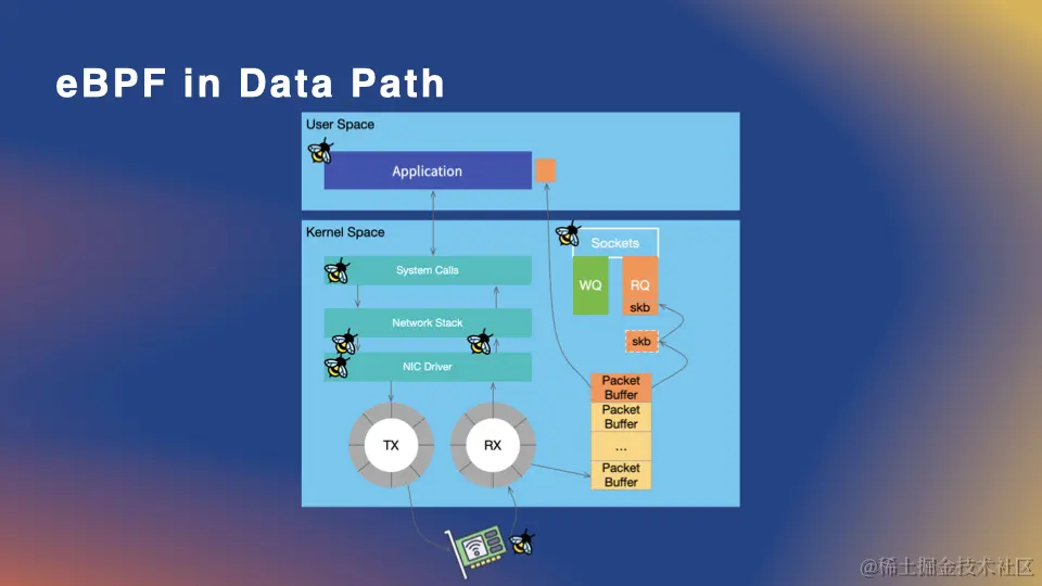 eBPF 在 Linux 数据路径方面的应用,特别是在网络数据处理和性能优化上具有重要意义。在 Linux 数据路径中,eBPF 允许用户在内核中运行的代码对数据包进行高度定制的处理,这也在很多方面都非常有用,比如网络监控、安全、和性能增强。