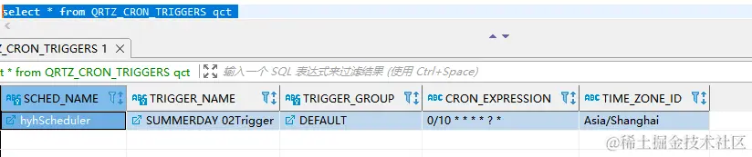 select * from QRTZ_CRON_TRIGGERS qct