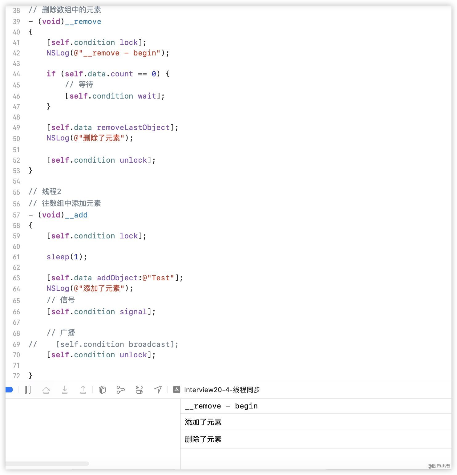 使用[[NSConditionLock alloc] init]初始化,condition为 0