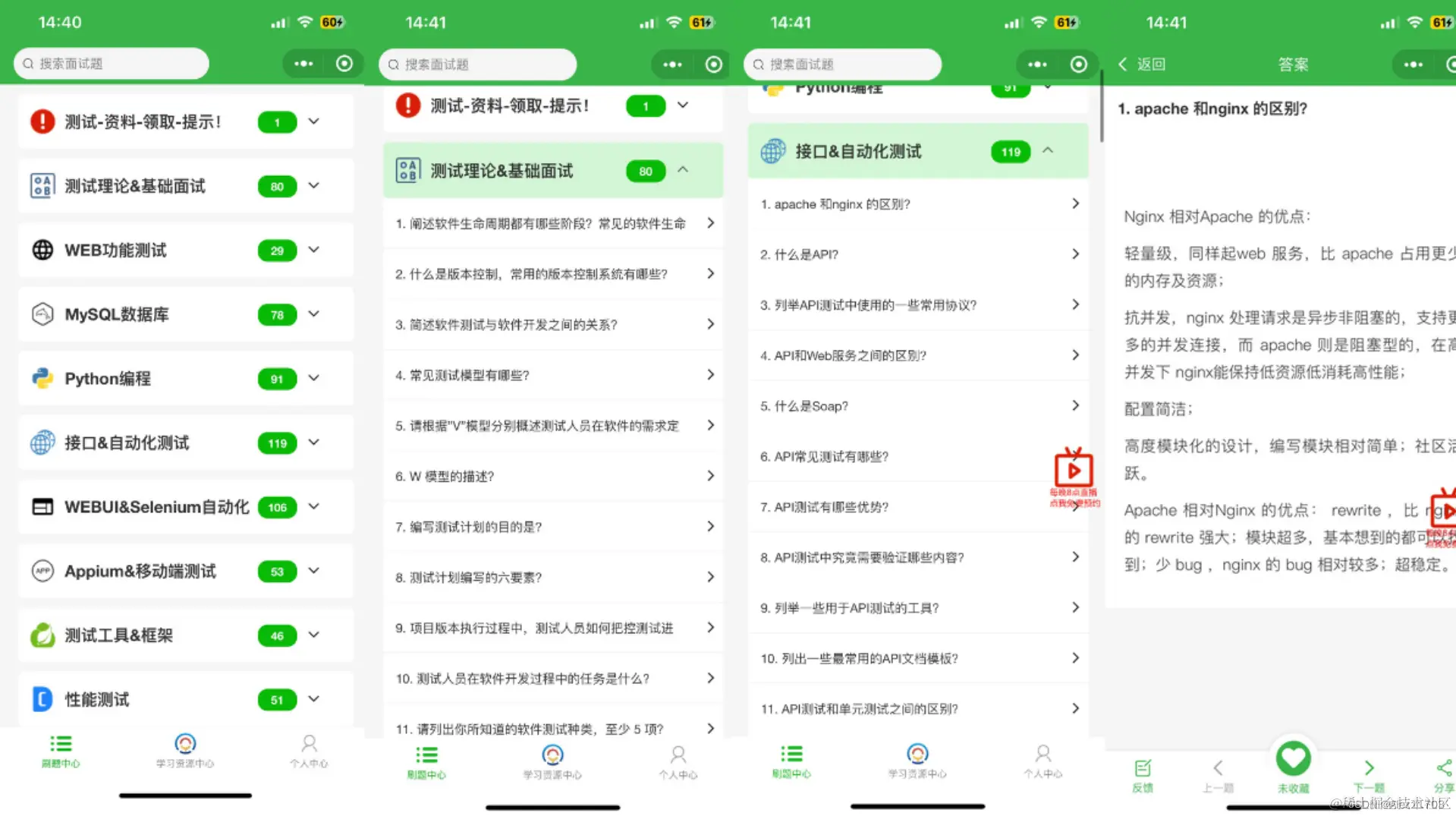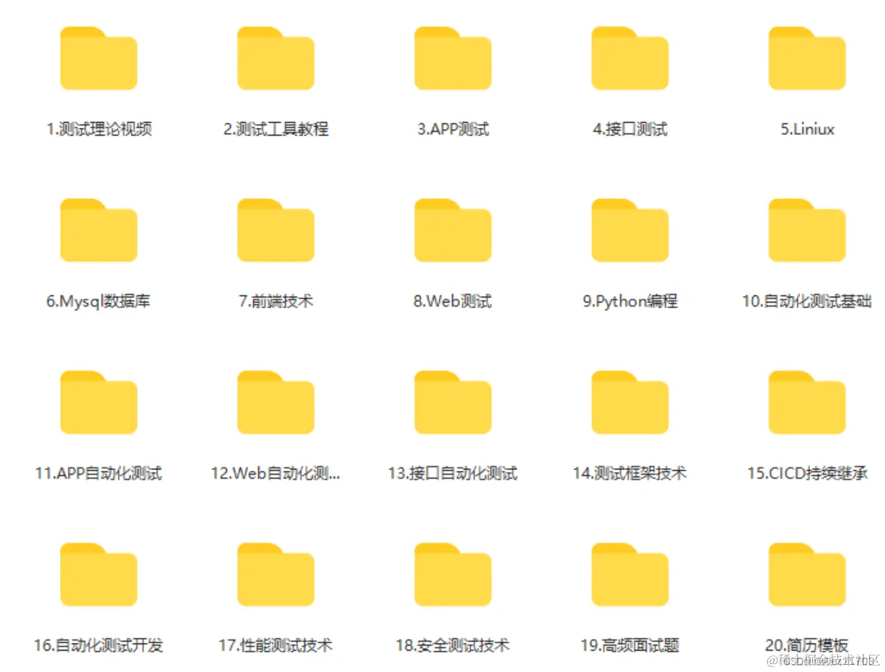 6、web,app,接口自动化 ,7、性能测试 ,8、编程基础,9、hr面试题