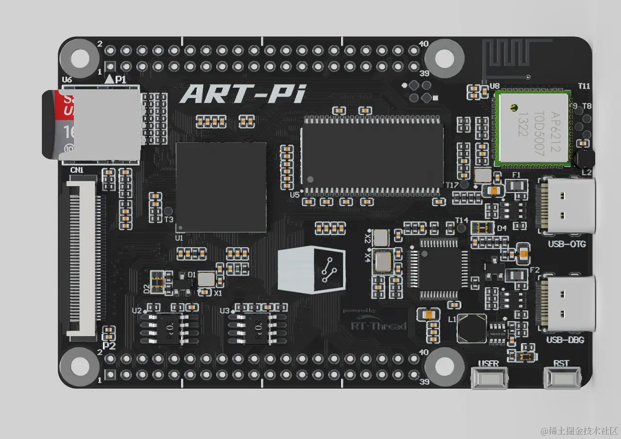 ART-Pi 是 RT-Thread 官方推出一款具有高度可扩展性的硬件,能很好的满足绝大多数开发人员的 DIY 想法,其具备性能强大的主控,实用的外设,丰富的扩展接口,是学习、开发、DIY 的不二之选。