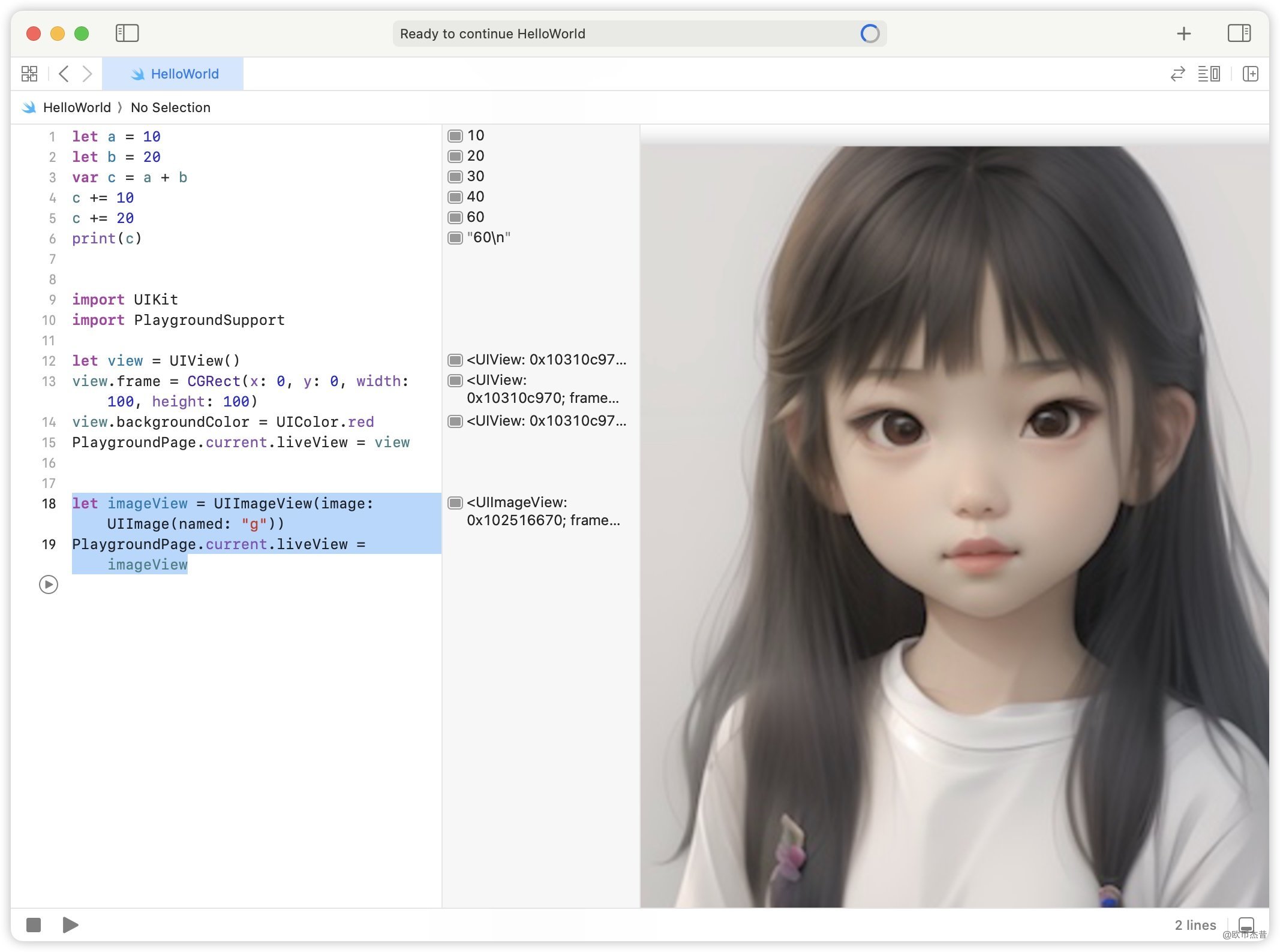 Playground可以快速预览代码效果,是学习语法的好帮手