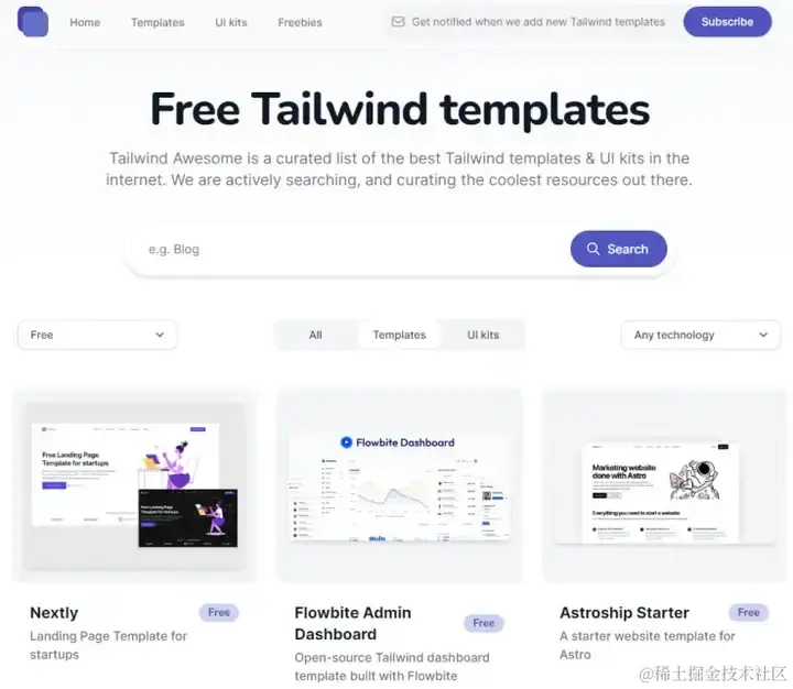 独立开发者大部分使用一些技术栈是 Next.js、Nuxt.js、TS、tailwindcss、tRPC**、**ORM(或原生 SQL)等等。设计方面的话,由于大部分独立开发者都在使用 tailwindcss,我给大家推荐一个模板站(Tailwind Awesome),帮助你快速构建项目。