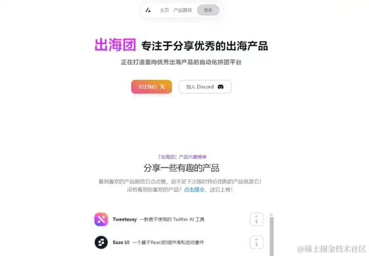 「出海团」主要是通过拼团活动进行的,计划面向全球市场,也在打造自己的「出海团」自动化拼团产品 和「出海团」社区,所以「出海团」不完全是互联网产品,更多是半产品半社区的融合体,也计划着自动化拼团平台的优质拼团服务 和 为更多产品创始人或独立开发者提供更多帮助和机会的双向出海社区。
