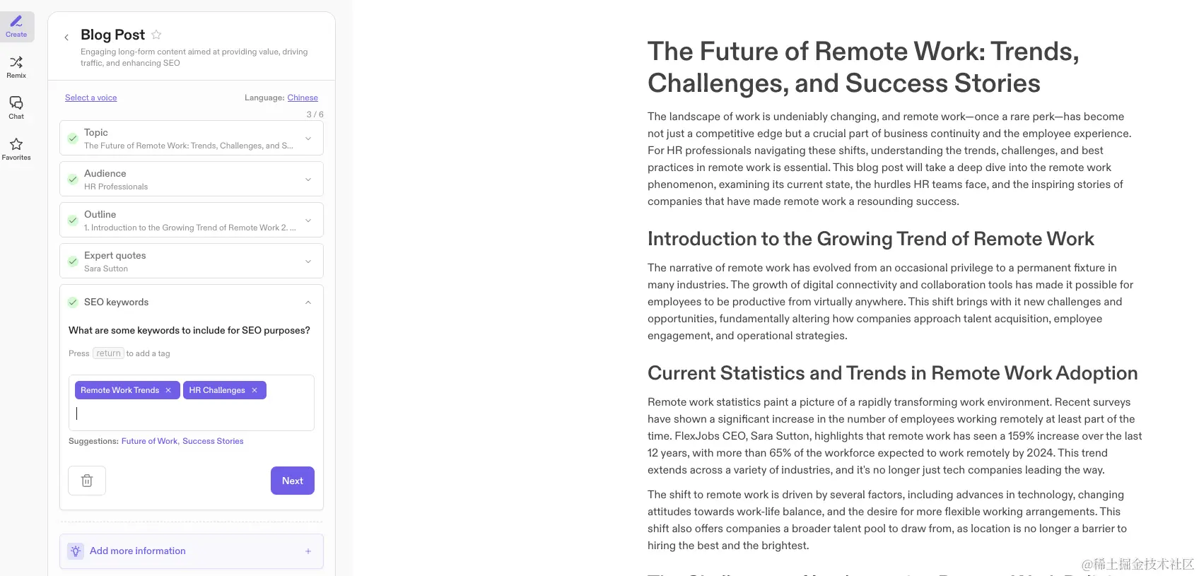 QuickCreator专注于生成Google SEO的博客文章。采用的除了大模型,还有一些自有的SEO分析和优化算法。
