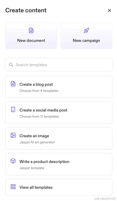 Jasper主要针对内容营销,可以生成博客文章、社媒、销售邮件、图片等。采用多模型混搭(Open AI, PalM (Google), Anthropic, Cohere, Jasper)。