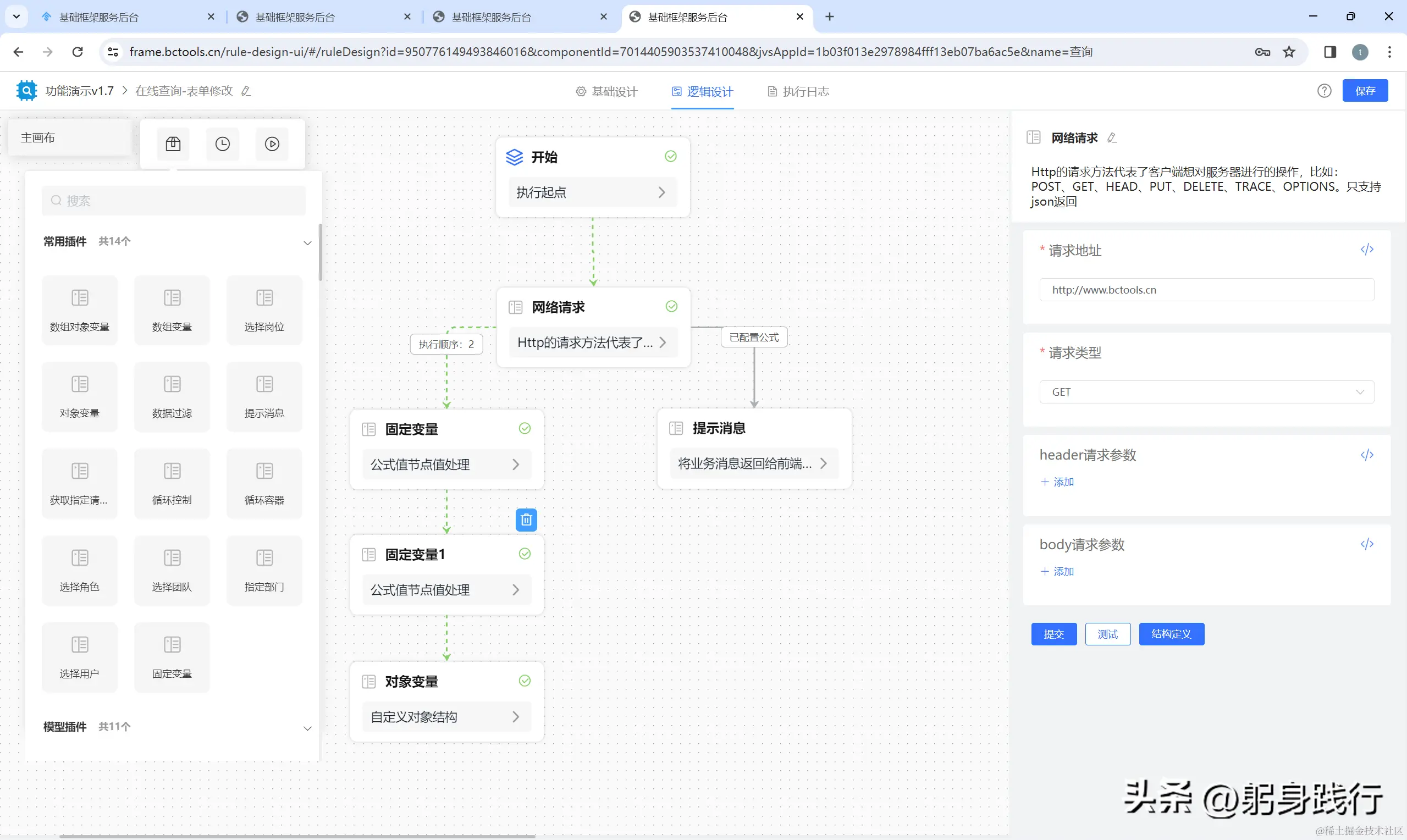 **逻辑引擎:**逻辑引擎是通过对原子服务能力的可视化编排,同时接入外部应用,以满足数据处理、业务实现、自动化业务的实现,可以设计整个逻辑模块的输入、组装执行过程、生成标准的输出结果。轻松实现业务功能,无需复杂冗长的开发过程